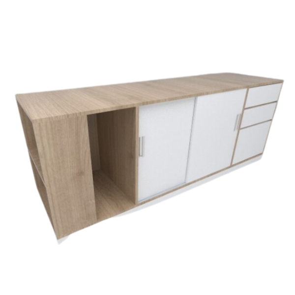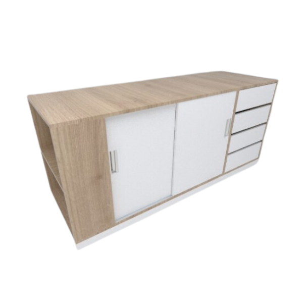 O Armário Baixo Complete da Brito Office oferece uma solução elegante e funcional para organização em ambientes profissionais. Com duas portas de correr e nichos abertos, ele proporciona amplo espaço de armazenamento para documentos e materiais, além de exibir itens decorativos. Suas opções personalizáveis incluem três ou quatro gavetas e caixas de tomadas para maior praticidade. Com tampo de 25 mm, o armário garante durabilidade e pode ser acoplado a mesas, formando uma configuração em L. Esse design versátil une praticidade e estilo, ideal para escritórios modernos.