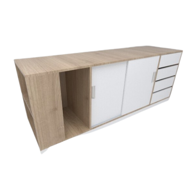 Este armário possui duas portas de correr que oferecem fácil acesso ao seu amplo espaço interno, tornando-o ideal para armazenar documentos, materiais de escritório e outros itens essenciais. Além disso, ele conta com dois nichos abertos, proporcionando um espaço adicional para exibir itens decorativos ou manter objetos de uso diário ao alcance.