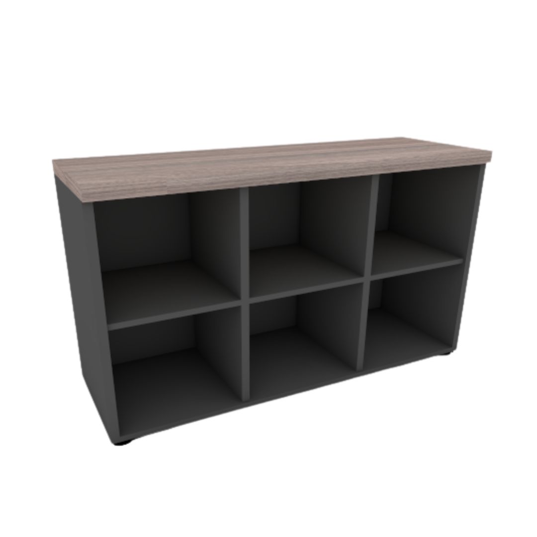 Disponível com 4 ou 6 vãos, o armário oferece ampla capacidade para armazenar documentos, materiais de escritório e objetos decorativos, mantendo o ambiente sempre funcional e visualmente equilibrado. Seu tampo com acabamento amadeirado contrasta com o corpo em tom neutro, criando uma estética elegante e contemporânea que se adapta perfeitamente a salas de reunião, recepções ou estações de trabalho.