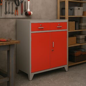 Organize seu espaço de trabalho com o Armário Ferramenta Duplo Brito Office, desenvolvido em chapa de aço resistente, com gavetas trancáveis, prateleiras reguláveis e design funcional que une segurança, praticidade e durabilidade.