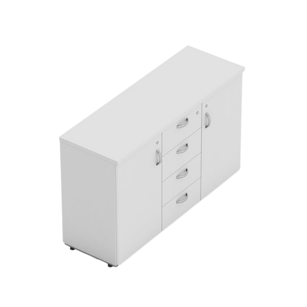 Você pode optar por quatro gavetas, fornecendo espaço organizado para itens menores, ou escolher uma prateleira que é perfeita para exibir objetos decorativos, livros ou armazenar pastas e documentos de forma organizada.