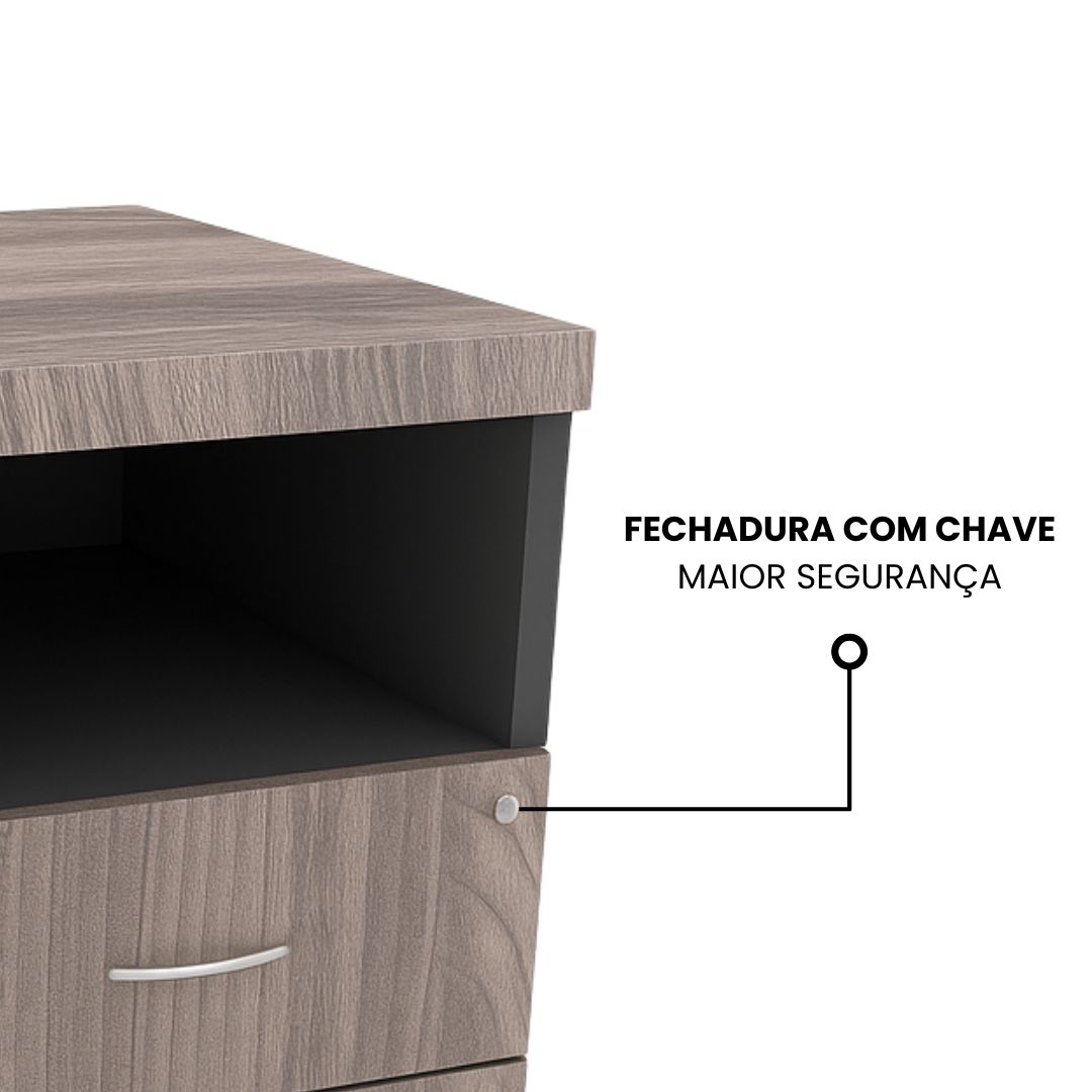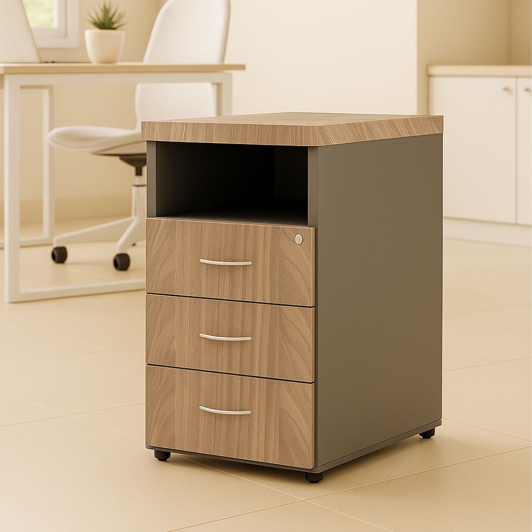 Com estrutura robusta em MDP de alta resistência, o arquivo conta com tampo em 18mm ou 25mm e acabamento em fita de borda 2mm, garantindo durabilidade e acabamento superior. O vão superior é ideal para acomodar itens de uso rápido — como pastas, livros ou documentos —, enquanto as três gavetas com corrediças metálicas oferecem abertura suave e espaço interno otimizado.