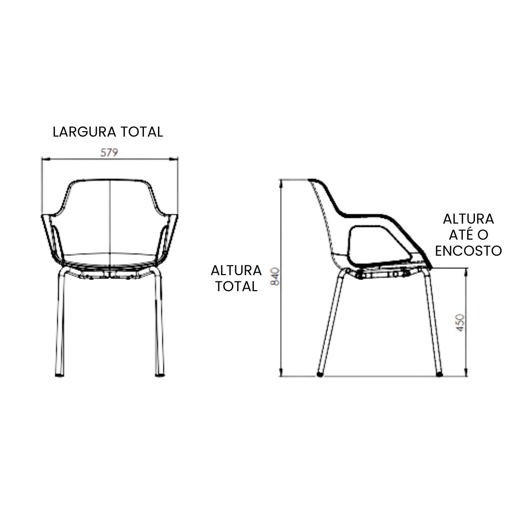 A estrutura tubular em aço é pintada na mesma cor da concha, com sapatas em PVC antiderrapante, garantindo maior estabilidade e proteção para o piso. O sistema de fixação é feito com 04 parafusos M6, proporcionando montagem rápida e segura.
