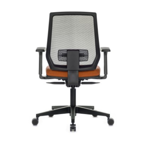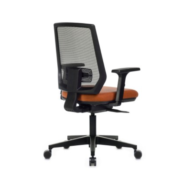Seu encosto com tela mesh proporciona ventilação e apoio lombar eficiente, com dimensões de 490mm de altura por 460mm de largura. Conta ainda com ajuste de altura com 10 níveis de regulagem (72mm de amplitude), promovendo adaptações precisas para diferentes biotipos.