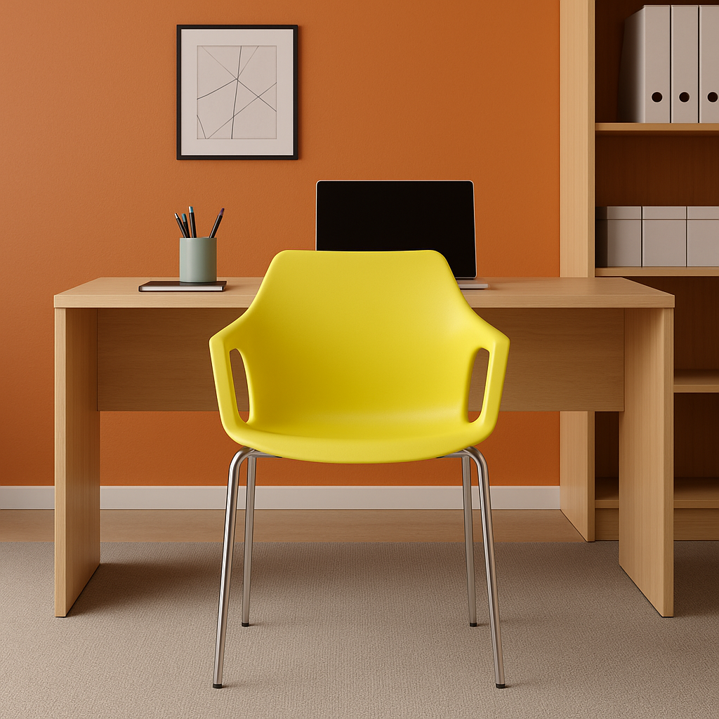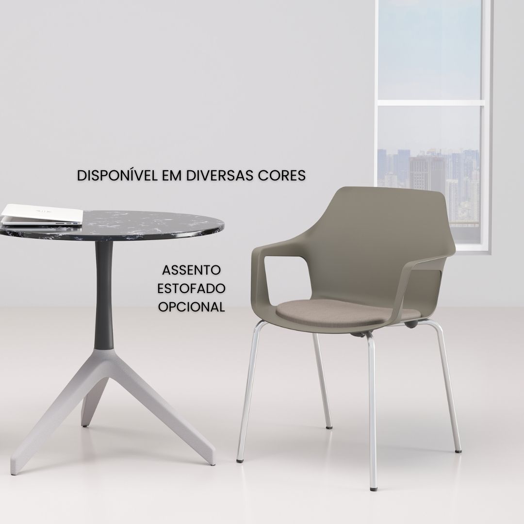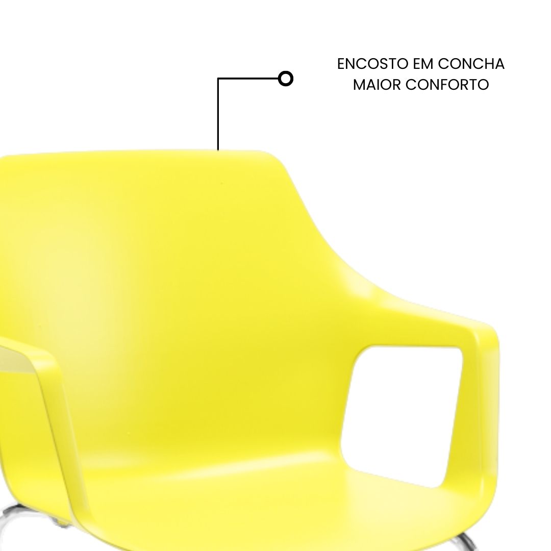 A Mustard Fixa também é empilhável, facilitando o armazenamento e a reorganização de espaços com agilidade — um diferencial essencial em ambientes dinâmicos e multifuncionais.