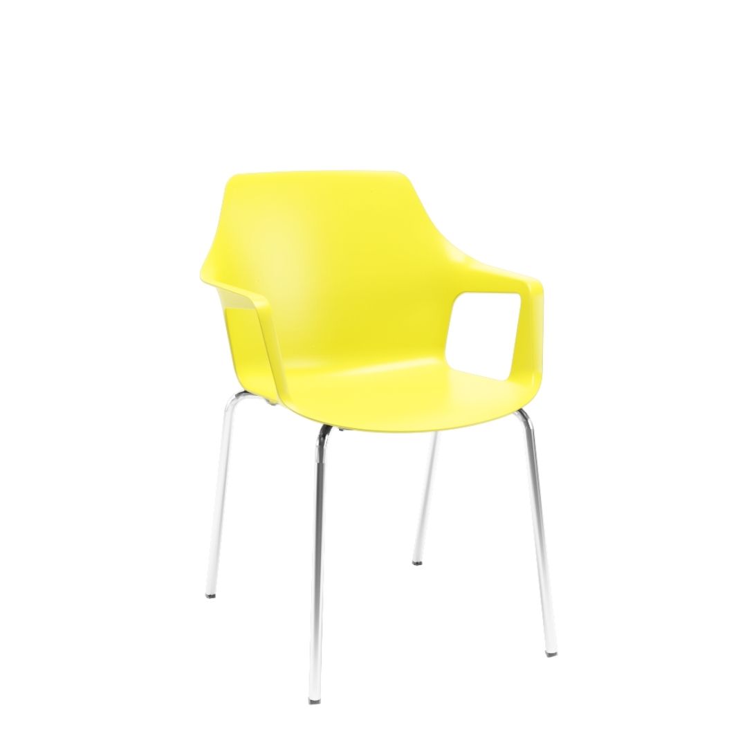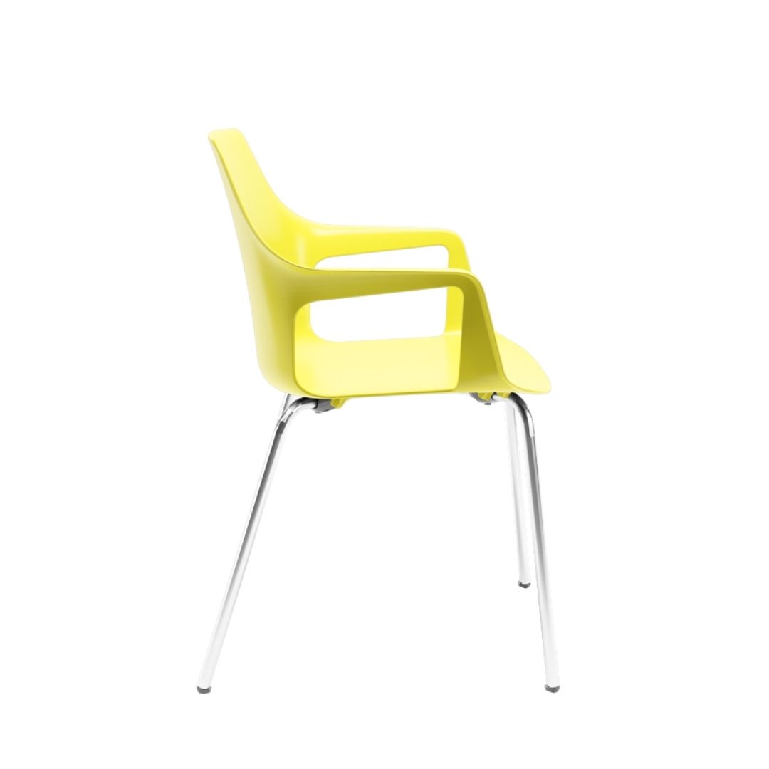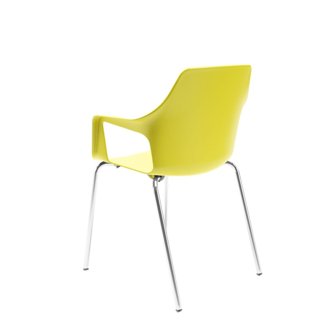 A Mustard Fixa também é empilhável, facilitando o armazenamento e a reorganização de espaços com agilidade — um diferencial essencial em ambientes dinâmicos e multifuncionais.