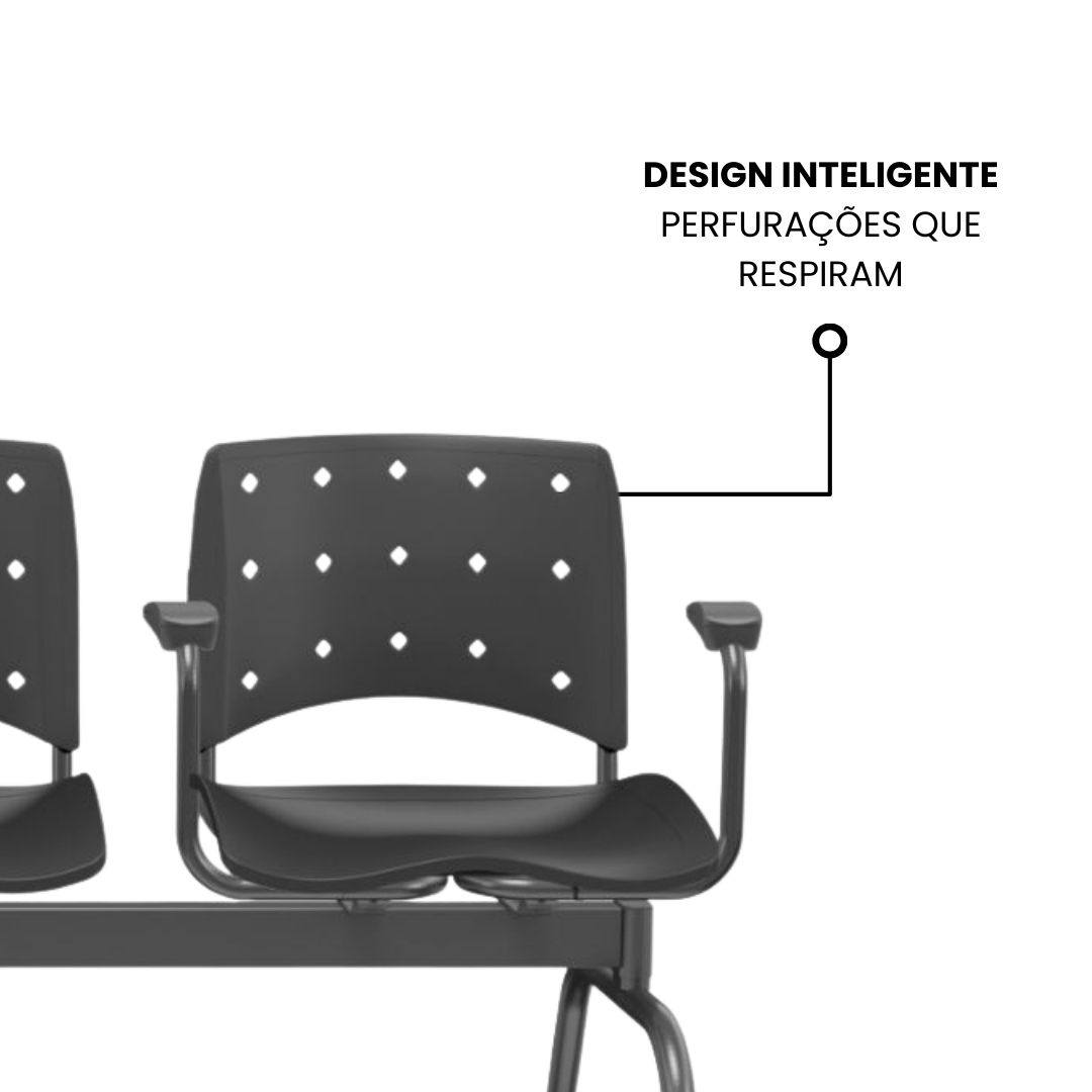 Seu assento e encosto anatômicos com estofamento preto proporcionam conforto durante longos períodos de uso, favorecendo a postura e o bem-estar dos usuários. Além disso, o acabamento de fácil limpeza e a ampla variedade de cores permitem que a longarina se adapte a diferentes projetos arquitetônicos e estilos de ambiente.