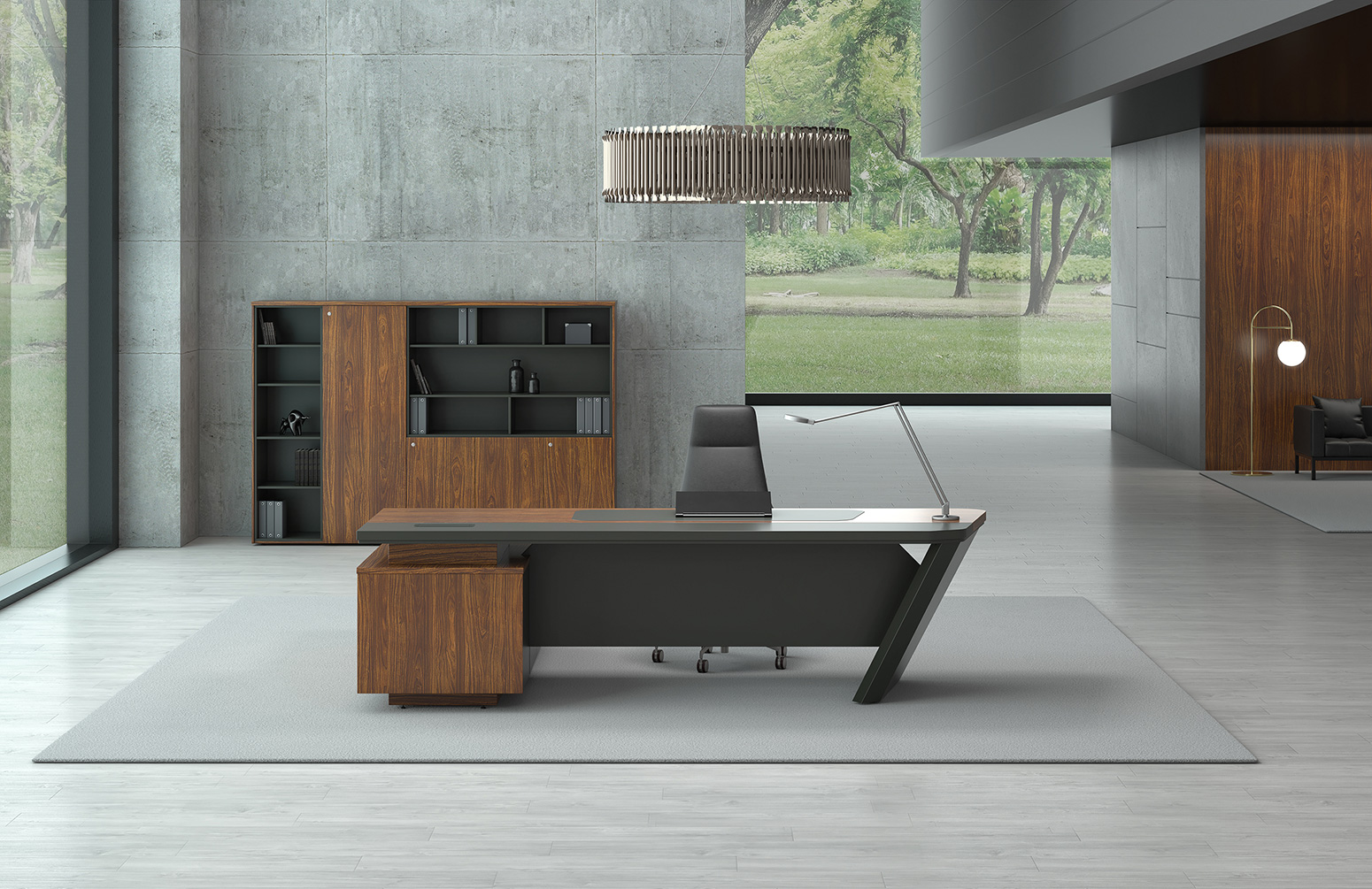 A base metálica da Mesa Euforia é composta por pés angulados, feitos de chapa e tubo de aço, o que garante máxima estabilidade e um visual moderno. O design angulado dá um toque elegante e contemporâneo ao ambiente, além de assegurar a durabilidade necessária para suportar o uso intenso em escritórios.