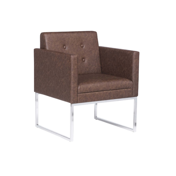 Sustentada por pés de metal em tubo industrial de aço cromado ou pintado, a poltrona possui uma base sólida, combinando estabilidade e resistência. Dessa forma, a opção entre o acabamento cromado ou pintado oferece versatilidade estilística para se adequar a diferentes ambientes.